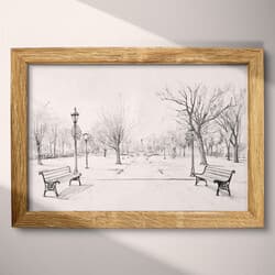 Park Benches Digital Download | Landscape Wall Decor | Landscapes Decor | Gray and Black Print | Vintage Wall Art | Living Room Art | Autumn Digital Download | Pencil Sketch
