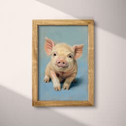 Pig Art | Animal Wall Art | Animals Print | Blue, Brown, Beige, Black and Pink Decor | Chibi Wall Decor | Kids Digital Download | Baby Shower Art | Easter Wall Art | Spring Print | Pastel Pencil Illustration