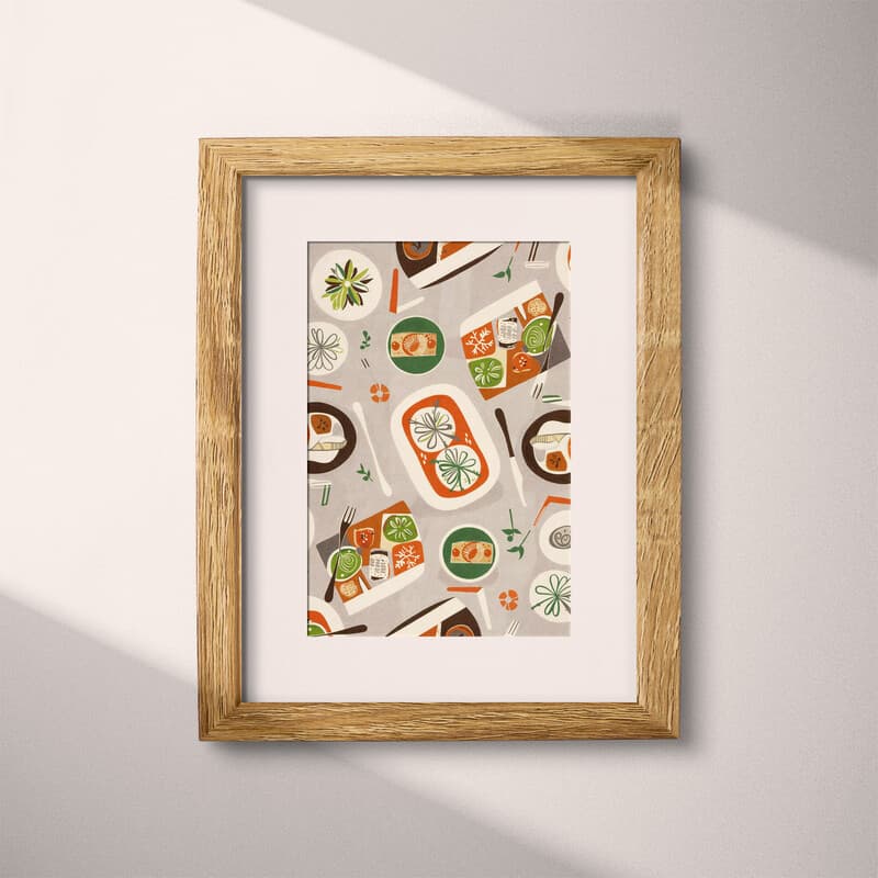 Food Pattern Art | Food Wall Art | Food & Drink Print | Beige, Brown, Gray, Orange and Pink Decor | Mid Century Wall Decor | Kitchen & Dining Digital Download | Housewarming Art | Thanksgiving Wall Art | Autumn Print | Textile