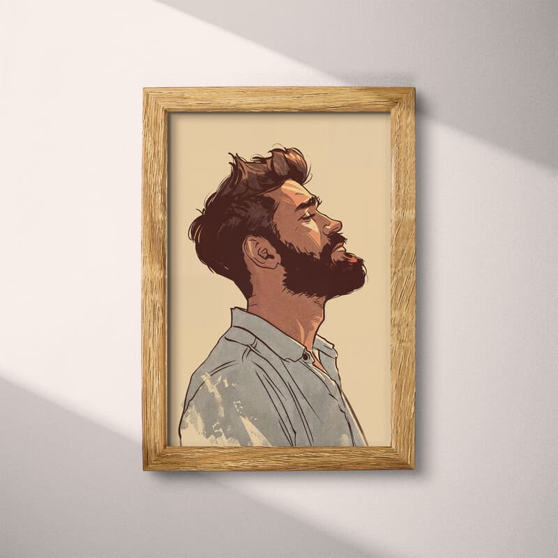 Bearded Man Digital Download | Portraits Wall Decor | Portrait Decor | Beige, Brown and Gray Print | Vintage Wall Art | Office Art | Father's Day Digital Download | Autumn Wall Decor | Cartoon Drawing