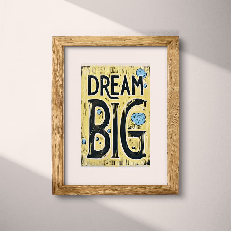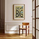 A vintage linocut print, the words "DREAM BIG".