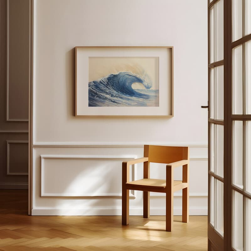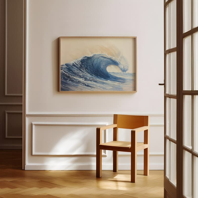 Sea Wave Art | Marine Wall Art | Nautical Print | White, Black, Blue and Brown Decor | Japandi Wall Decor | Living Room Digital Download | Housewarming Art | Summer Wall Art | Pastel Pencil Illustration