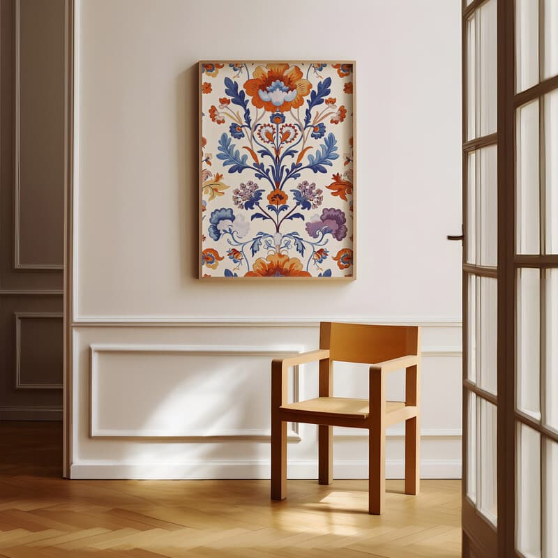 Floral Art | Botanical Wall Art | Flowers Print | White, Blue, Red and Orange Decor | Baroque Wall Decor | Living Room Digital Download | Housewarming Art | Spring Wall Art | Tapestry Print