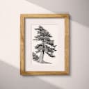 A botanical pencil sketch, a cypress tree.