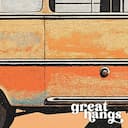 A vintage pastel pencil illustration, a beach bus under a palm tree, side view.