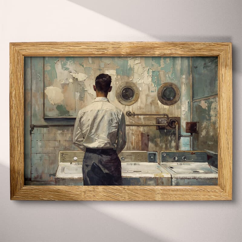 Man Digital Download | Figurative Wall Decor | Portrait Decor | Gray, Black, Beige and Blue Print | Vintage Wall Art | Laundry Art | Father's Day Digital Download | Winter Wall Decor | Oil Painting
