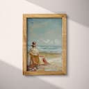 Woman Beach Digital Download | Beach Wall Decor | Coastal Decor | Blue, Brown and Black Print | Vintage Wall Art | Living Room Art | Housewarming Digital Download | Summer Wall Decor | Oil Painting