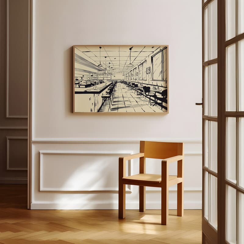 Diner Art | Food And Drink Wall Art | Architecture Print | Beige, Black and Gray Decor | Mid Century Wall Decor | Kitchen & Dining Digital Download | Housewarming Art | Ink Sketch