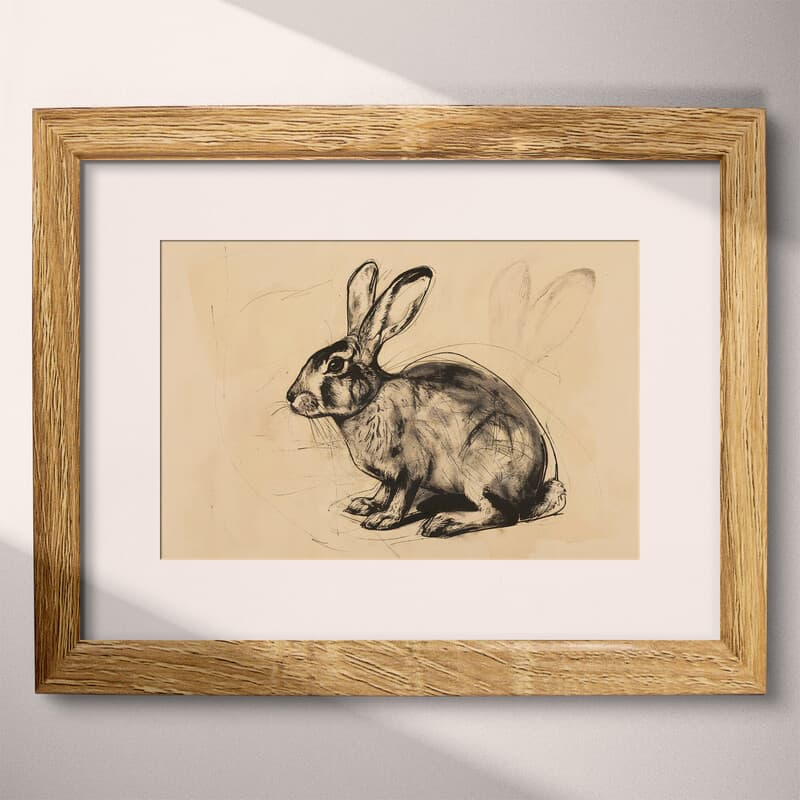 Rabbit Art | Animal Wall Art | Animals Print | Beige, Black and Brown Decor | Rustic Wall Decor | Nursery Digital Download | Baby Shower Art | Easter Wall Art | Autumn Print | Graphite Sketch