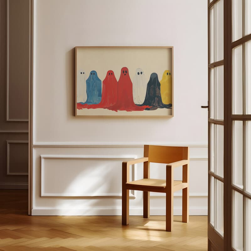 Ghosts Digital Download | Paranormal Wall Decor | Gothic Decor | White, Red, Black, Brown, Blue and Yellow Print | Minimal Wall Art | Kids Art | Halloween Digital Download | Halloween Wall Decor | Autumn Decor | Cartoon Drawing