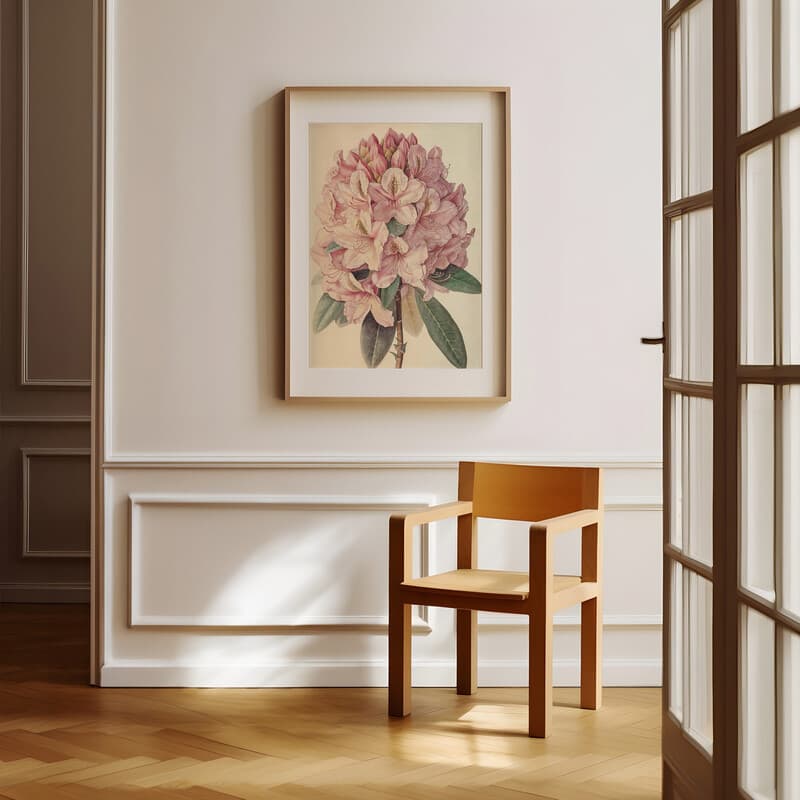 Rhododendron Art | Botanical Wall Art | Flowers Print | Beige, Pink, Green and Black Decor | Vintage Wall Decor | Living Room Digital Download | Housewarming Art | Mother's Day Wall Art | Spring Print | Pastel Pencil Illustration