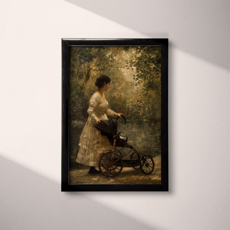 Woman Stroller Art | People Wall Art | Portrait Print | Black, Brown and Beige Decor | Vintage Wall Decor | Living Room Digital Download | Housewarming Art | Mother's Day Wall Art | Autumn Print | Oil Painting