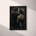 A vintage oil painting, man and woman at an opera, back view.