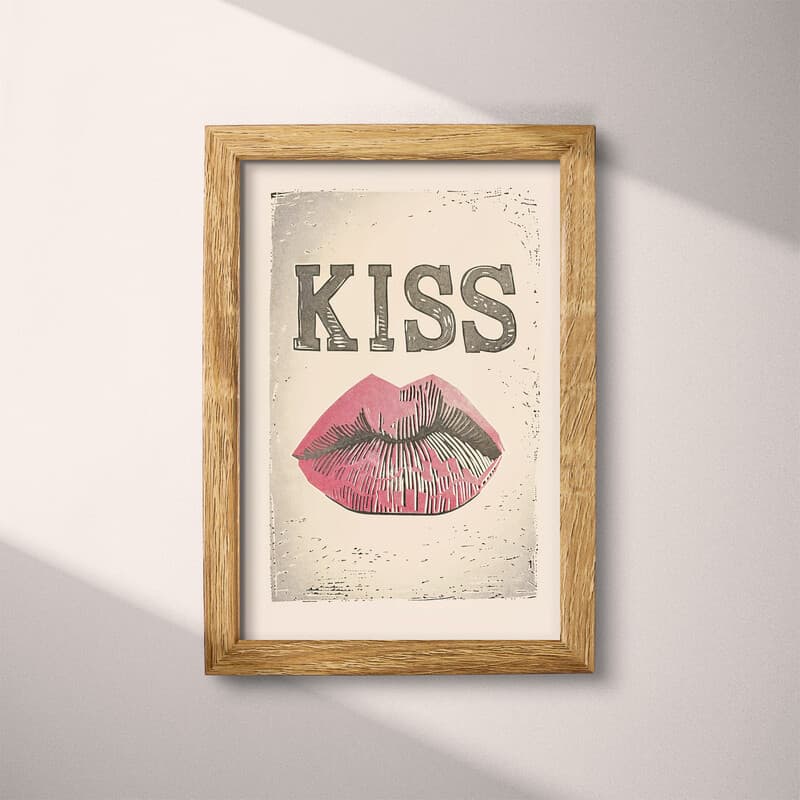 Kiss Digital Download | Romantic Wall Decor | White, Black, Brown and Pink Decor | Vintage Print | Bedroom Wall Art | Bachelor Party Art | Valentine's Day Digital Download | Linocut Print