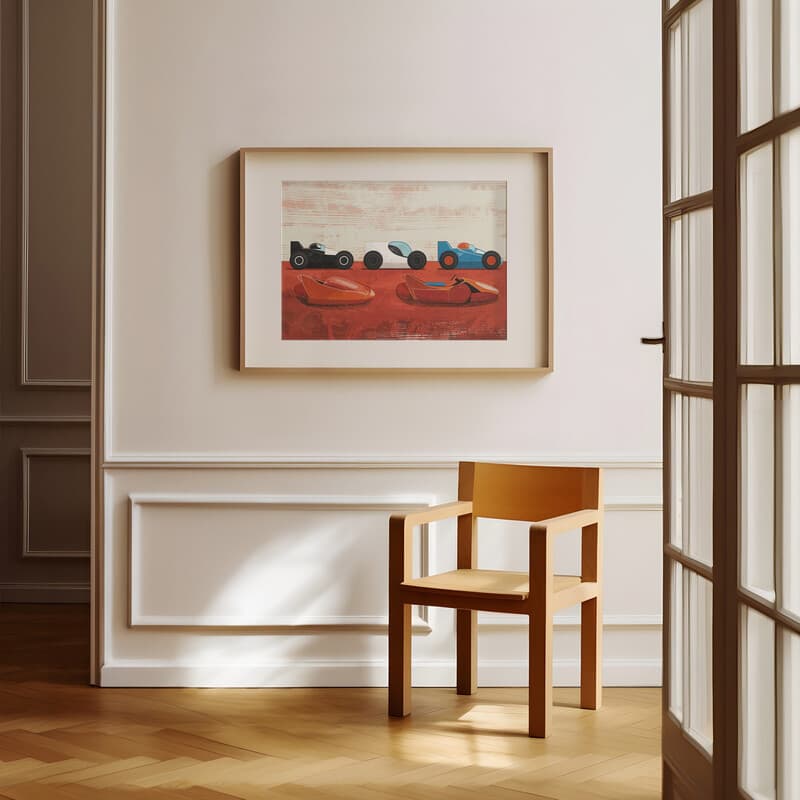 Racecars Art | Automotive Wall Art | Travel & Transportation Print | Brown, White, Black, Blue and Pink Decor | Cute Simple Wall Decor | Kids Digital Download | Back To School Art | Summer Wall Art | Simple Illustration