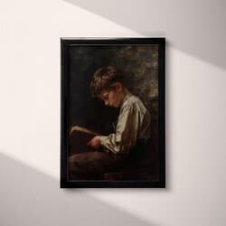 Boy Reading Digital Download | Portraits Wall Decor | Portrait Decor | Black, Brown and Beige Print | Baroque Wall Art | Living Room Art | Back To School Digital Download | Autumn Wall Decor | Oil Painting